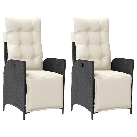 Sedie da Giardino Reclinabili 2 pz con Cuscini Polyrattan Nero