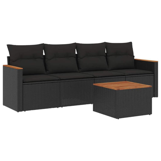 Set Divani da Giardino 5 pz con Cuscini in Polyrattan Nero