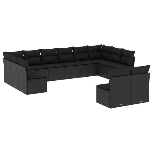 Set Divani da Giardino 12 pz con Cuscini Nero in Polyrattan