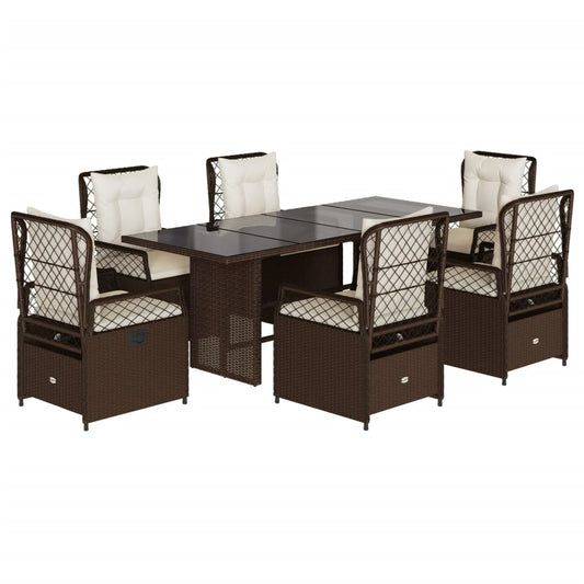 7-piece Garden Dining Set with Brown Polyrattan Cushions