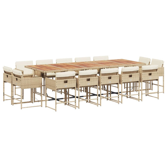 Set Pranzo da Giardino 15 pz con Cuscini Beige Misto Polyrattan