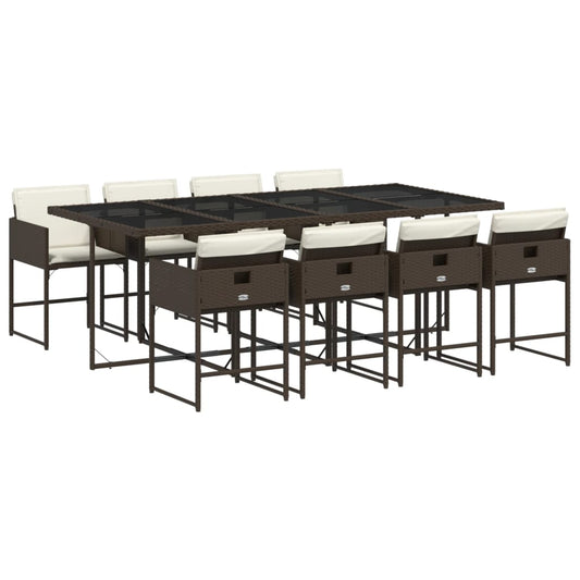 11 pc Garden Dining Set with Beige Polyrattan Mixed Cushions