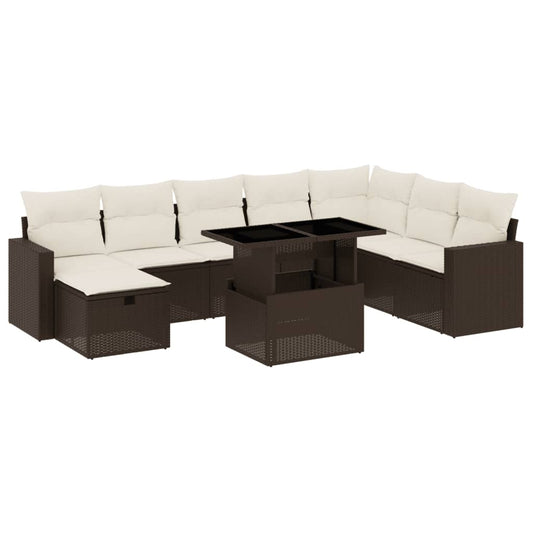 9pc Garden Sofa Set with Brown Polyrattan Cushions