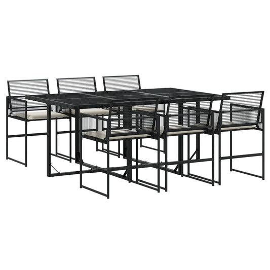 Set da Pranzo da Giardino 7 pz Nero con Cuscini in Polyrattan