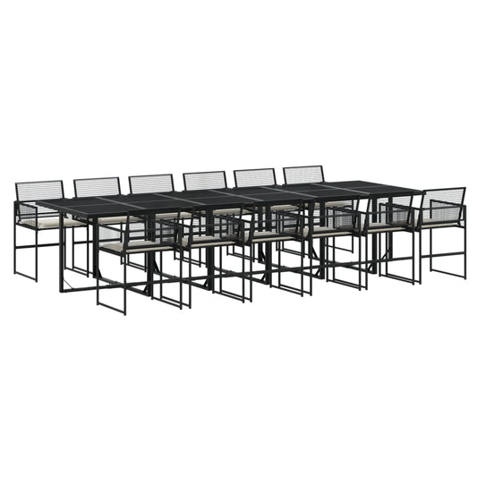 Set da Pranzo da Giardino 13pz con Cuscini Nero in Polyrattan