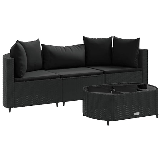 Set Divani da Giardino 4 pz con Cuscini Nero in Polyrattan