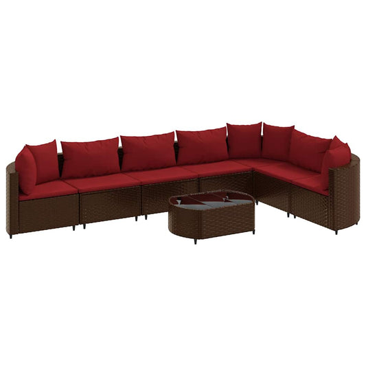 Set Divani da Giardino 8 pz con Cuscini Marrone in Polyrattan