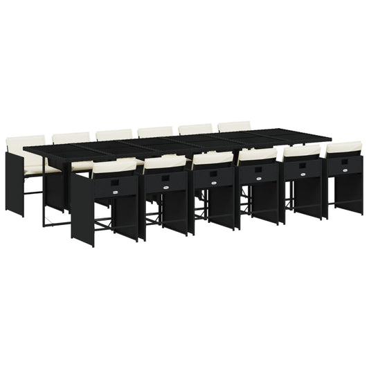 Set da Pranzo da Giardino 15 pz con Cuscini Nero in Polyrattan