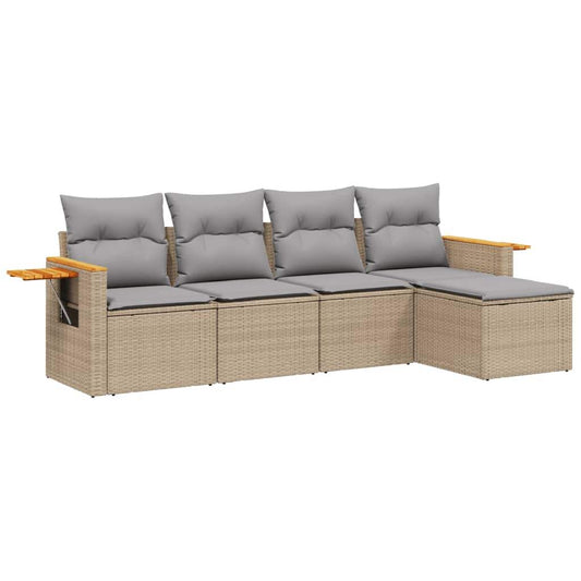 Set Divano da Giardino 5 pz con Cuscini Beige in Polyrattan