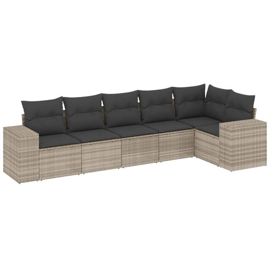 Set Divano da Giardino 6pz con Cuscini Grigio Chiaro Polyrattan