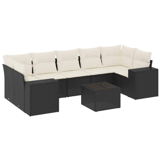 Set Divani da Giardino con Cuscini 8 pz Nero in Polyrattan