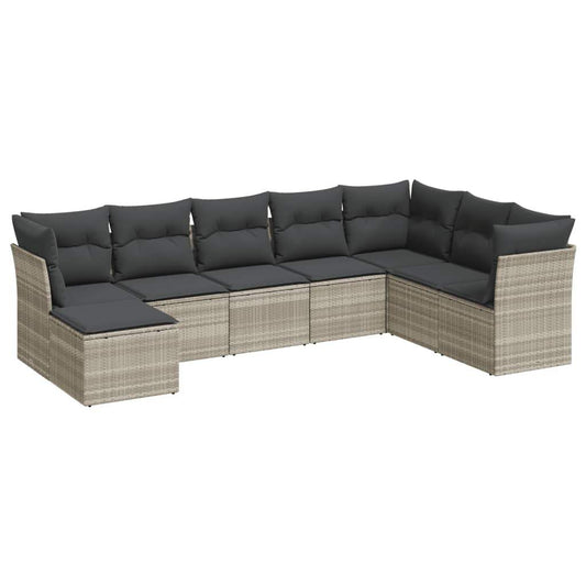 Set Divano da Giardino 8pz con Cuscini Grigio Chiaro Polyrattan