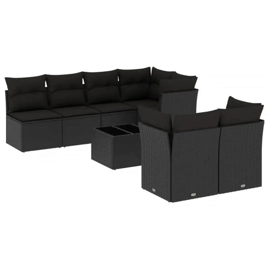 Set Divani da Giardino con Cuscini 8 pz Nero in Polyrattan