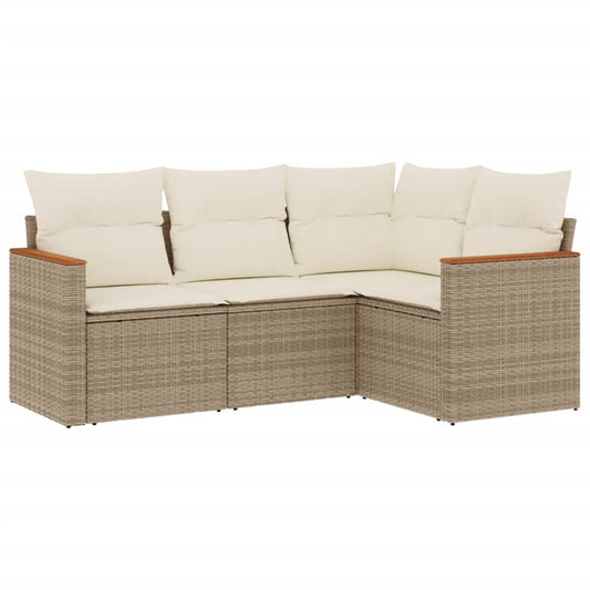 Set Divano da Giardino 4 pz con Cuscini Beige in Polyrattan