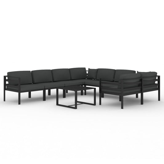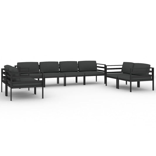 Set Divani da Giardino 10 pz con Cuscini in Alluminio Antracite