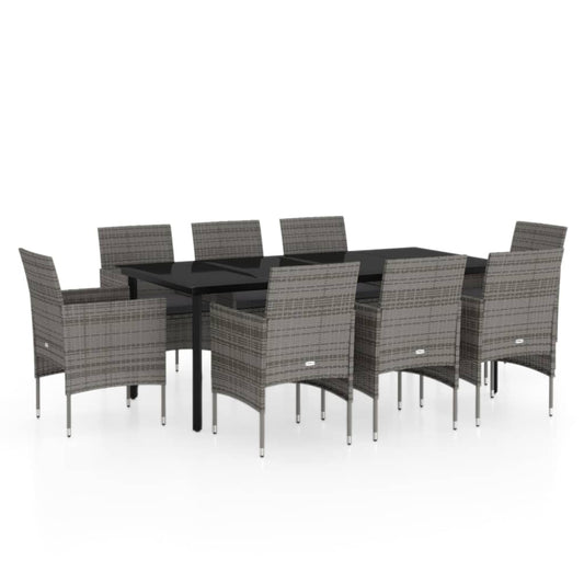 Set da Pranzo da Giardino 9 pz con Cuscini Grigio