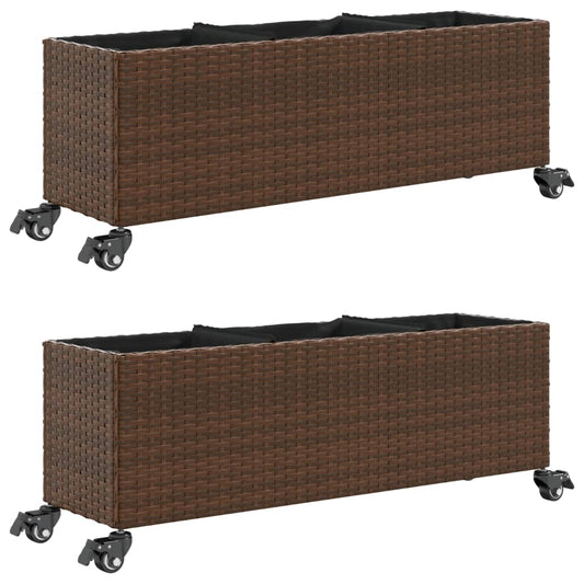 Fioriere da Giardino Ruote 2pz Marrone 107x32x38 cm Polyrattan