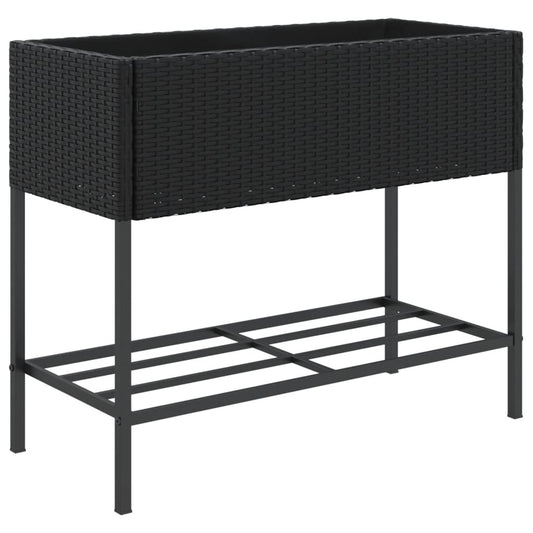 Fioriera da Giardino con Ripiano Nera in Polyrattan