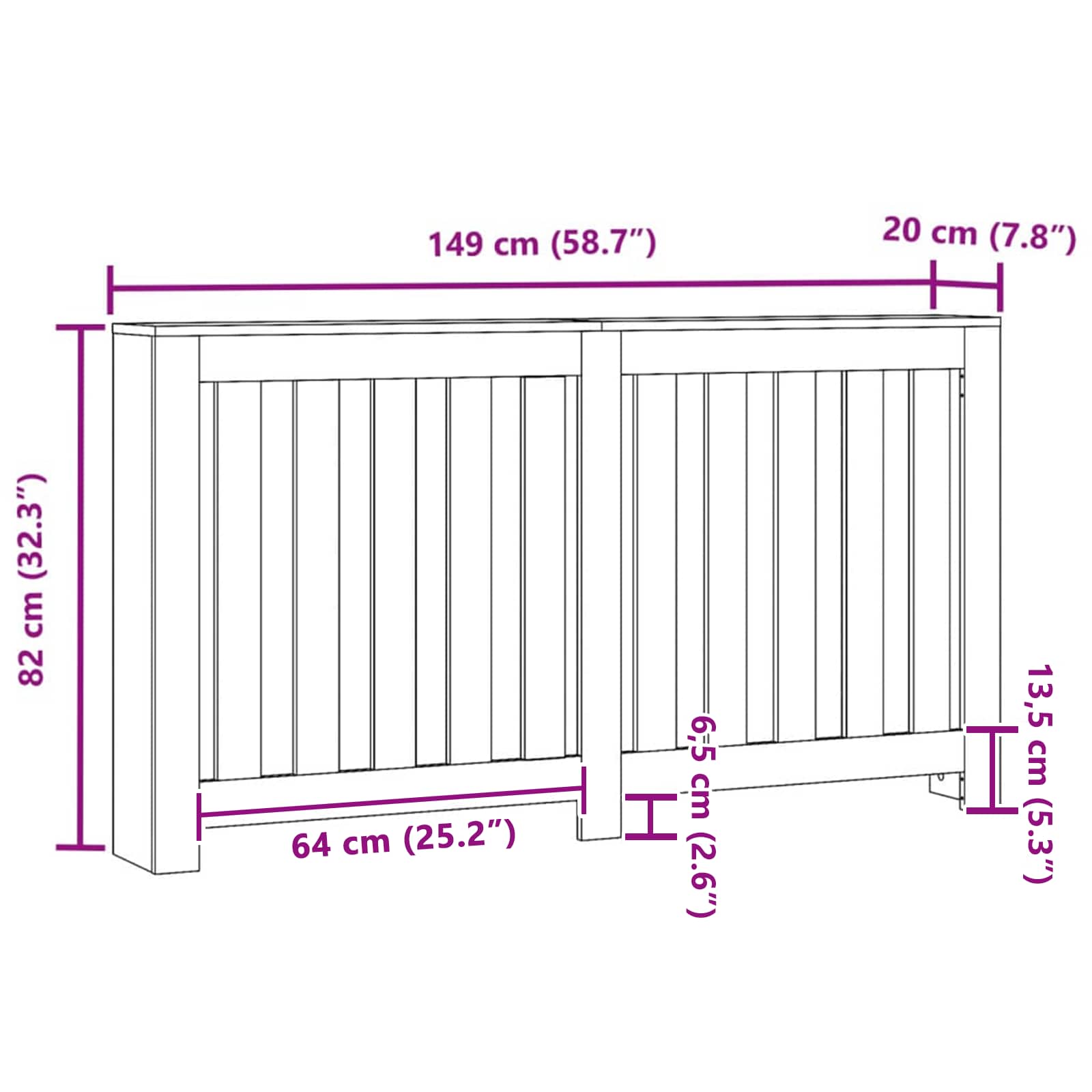 Questa copertura per radiatore in legno ingegnerizzato è perfetta per qualsiasi arredamento del soggiorno, offrendo anche vantaggi pratici. La sua forma rettangolare e snella, con poca decorazione, garantisce un aspetto pulito e moderno, ideale per chi cerca essenziali che migliorano l'estetica. Creata per interni, si adatta bene accanto a pareti o sotto finestre, proteggendo i radiatori e offrendo spazio extra per oggetti.