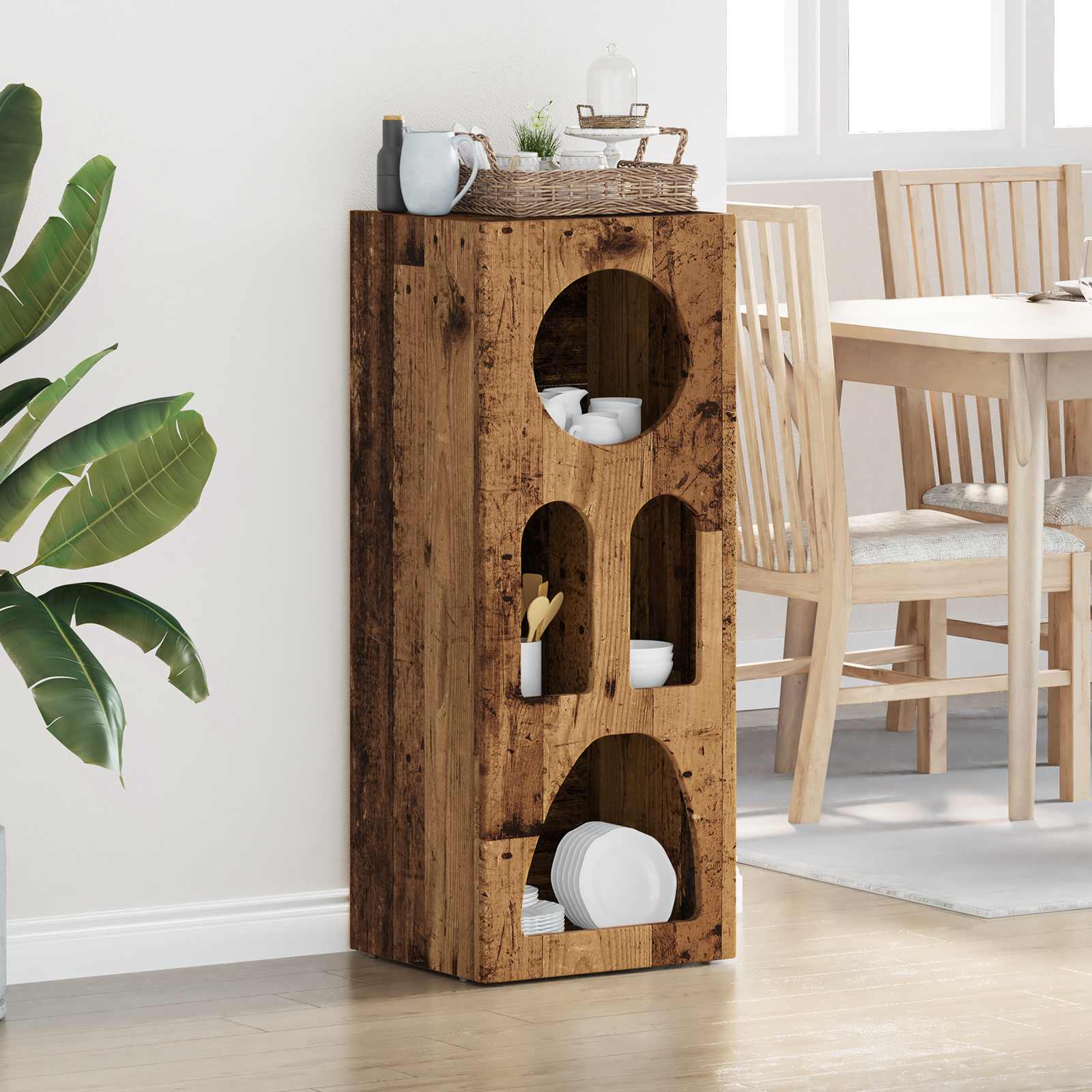 - Materiali: Realizzata in legno ingegnerizzato resistente, questa credenza offre qualità e durata nel tempo. Il materiale resiste all'usura quotidiana, mantenendo la sua superficie liscia e il suo aspetto elegante. È la scelta ideale per chi cerca affidabilità senza rinunciare allo stile.