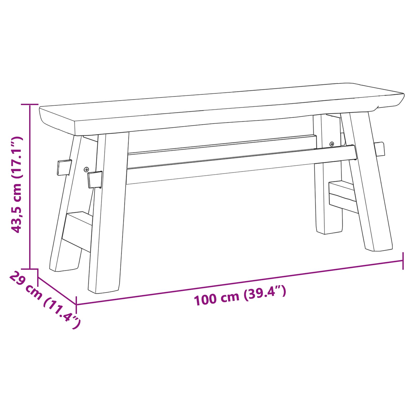 panchina Naturale 100 x 29 x 43,5 cm Legno di teak solido