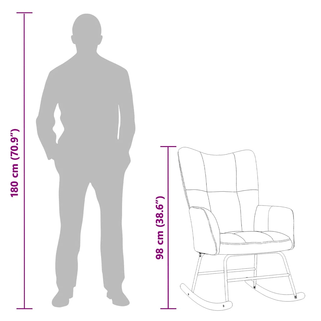 Caratterizzata da un design a blocchi, questa poltrona relax è esteticamente gradevole. Grazie all'imbottita spessa in gommapiuma, rivestita in velluto morbido al tatto, potrete godervi il tempo libero nel massimo comfort. Con il design lungo dei binari a dondolo, la poltrona non si ribalta facilmente. Inoltre, supportata da struttura e gambe in acciaio, insieme a binari a dondolo in legno, la sedia da soggiorno è stabile e durevole.