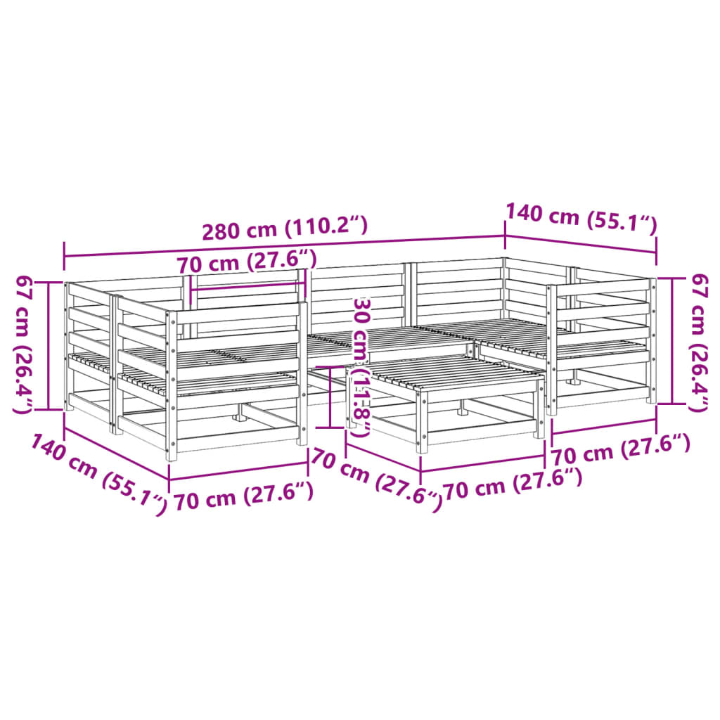 Set Divani da Giardino 7 pz in Legno Massello di Pino