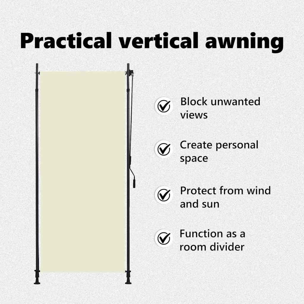 Realizzata in tessuto di qualità con rivestimento in PA, è resistente allo sbiadimento e può bloccare il sole consentendo al contempo il passaggio dell'aria. Può essere facilmente arrotolata su e giù con il sistema azionato a manovella. Questa tenda verticale è dotata di due montanti con altezza regolabile da 2 a 3 m. Può adattarsi alla maggior parte dell'altezza del soffitto e garantire una facile installazione.