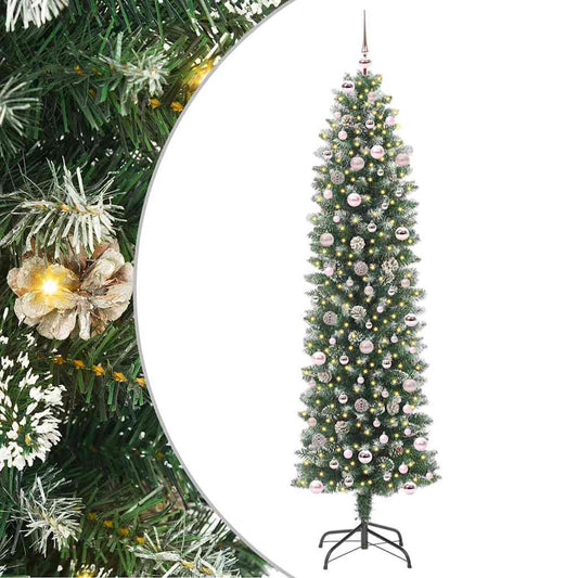 Albero di Natale Artificiale Sottile Verde e bianco 240 cm