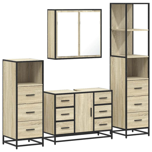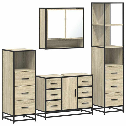 Set Mobili da Bagno 4 pz Rovere Sonoma in Legno Multistrato