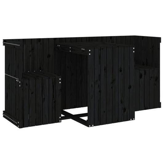 Set da Balcone a 2 Posti Nero in Legno Massello di Pino