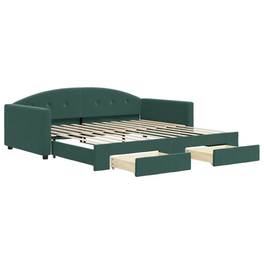 Divano Letto Estraibile Cassetti Verde Scuro 100x200cm Velluto