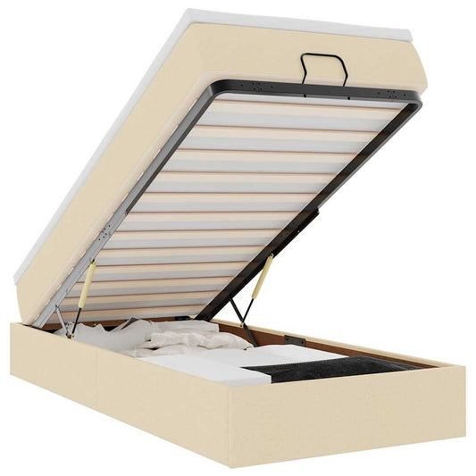 Struttura Letto Pouf senza Materasso Crema 90x190 cm in Tessuto