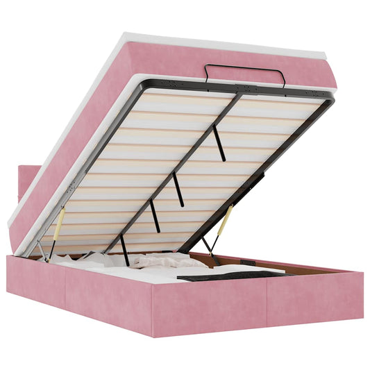 Pouf Letto con Materasso e LED Rosa 120x190cm in Velluto