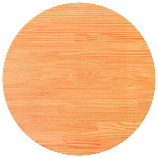 Piano Tavolo Rotondo Marrone Cera Ø90x2,5cm Legno Massello Pino