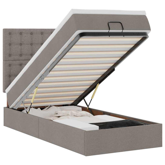 Struttura Letto Pouf con Materasso Tortora 120x190 cm Tessuto
