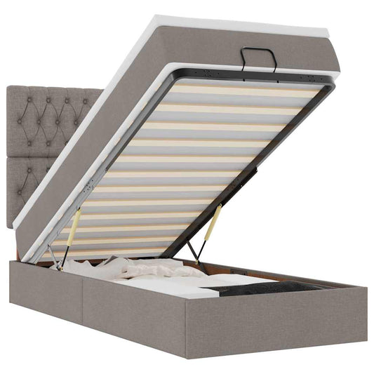 Struttura Letto Pouf con Materasso Tortora 120x190 cm Tessuto