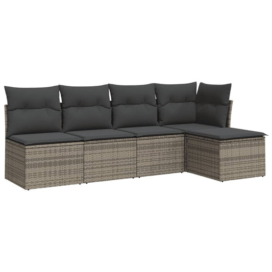 Set Divano da Giardino 5 pz con Cuscini Grigio in Polyrattan