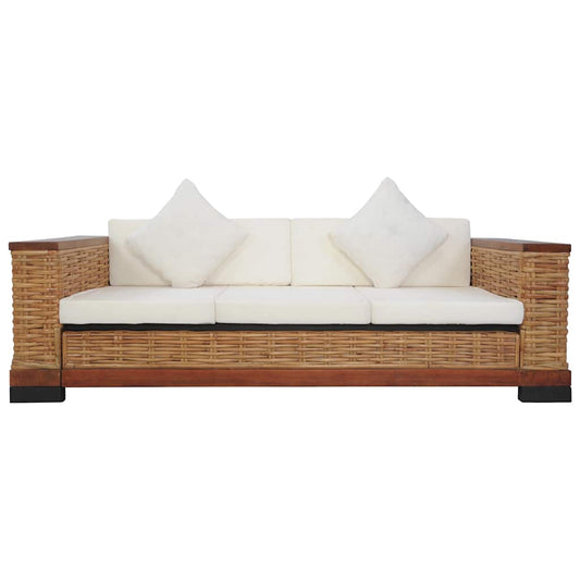 Divano a 3 Posti con Cuscini Marrone in Rattan Naturale
