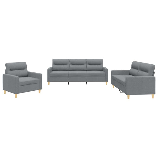 Set di Divani 3 pz con Cuscini Grigio Chiaro in Tessuto
