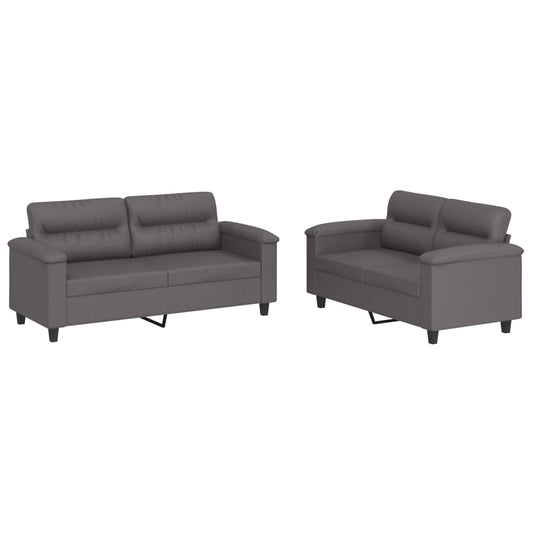 Set di Divani 2 pz con Cuscini Grigio in Similpelle