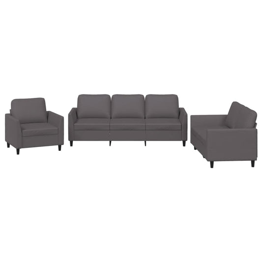 Set di Divani 3 pz con Cuscini Grigio in Similpelle