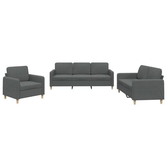 Set di Divani 3 pz con Cuscini Grigio Scuro in Tessuto