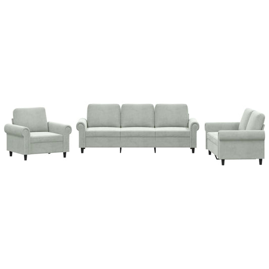 Set di Divani 3 pz con Cuscini Grigio Chiaro in Velluto