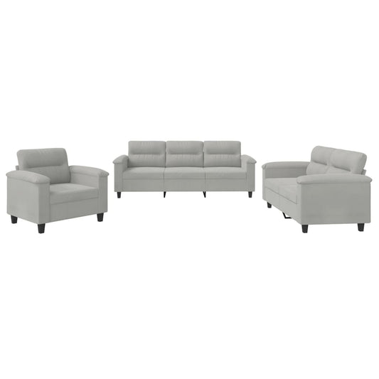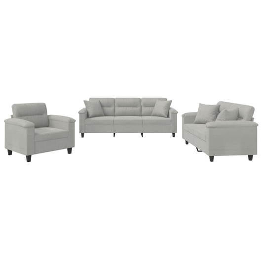 Set Divani 3 pz con Cuscini Grigio Chiaro in Tessuto Microfibra