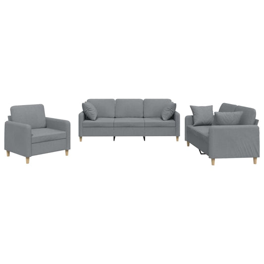 Set Divani 3 pz con Cuscini Grigio Chiaro in Tessuto