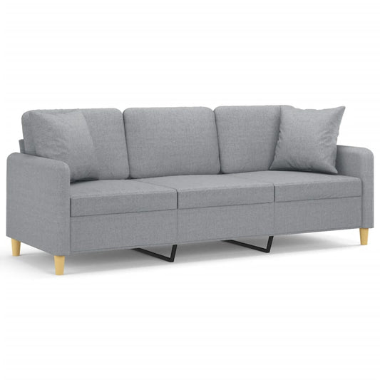 Divano a 3 Posti con Cuscini Grigio Chiaro 180 cm in Tessuto