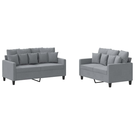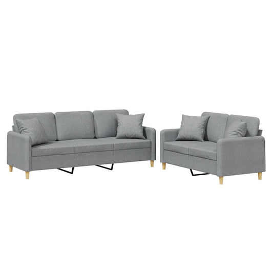 Set Divani 2 pz con Cuscini Grigio Chiaro in Tessuto