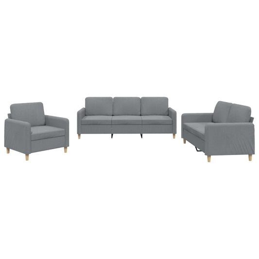 Set di Divani 3 pz con Cuscini Grigio Chiaro in Tessuto