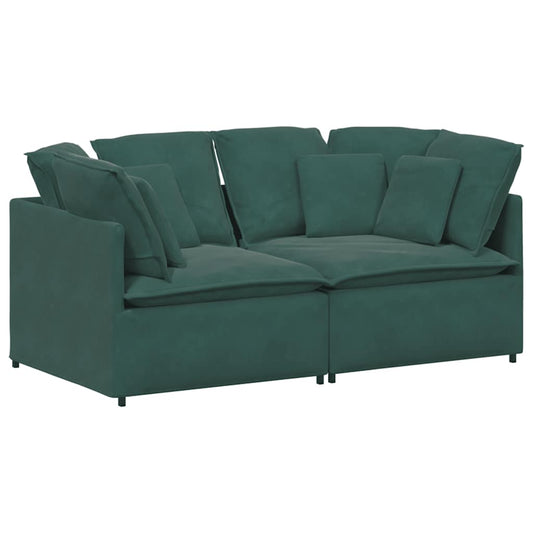 Divano Modulare con Cuscini in Velluto Verde Scuro